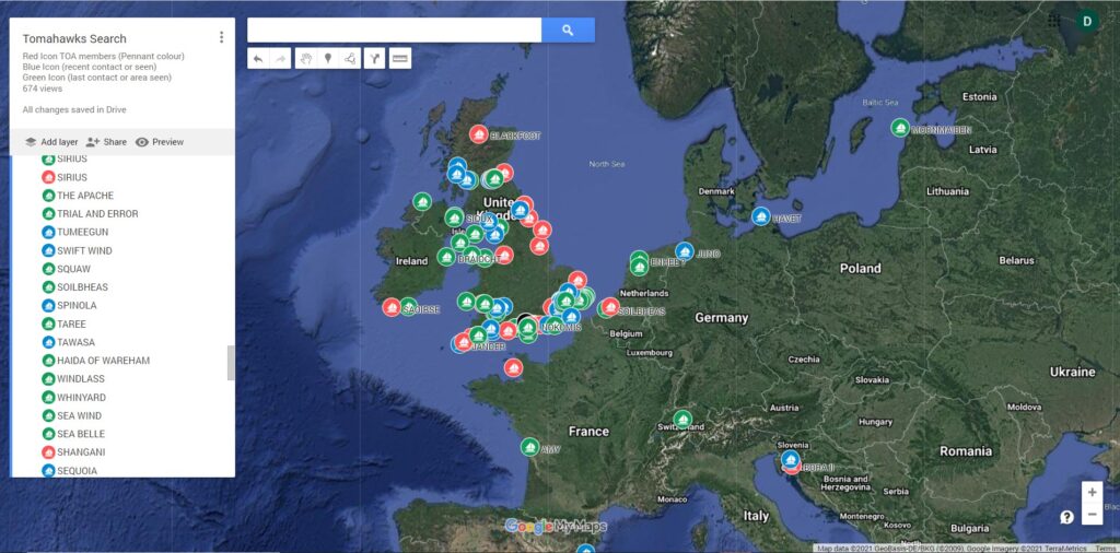 You can now search for all known Tomahawks anywhere around the world, (currently 140), on your Laptop/PC/Tablet or phone. To bring up the Tomahawk Search map click on locations,